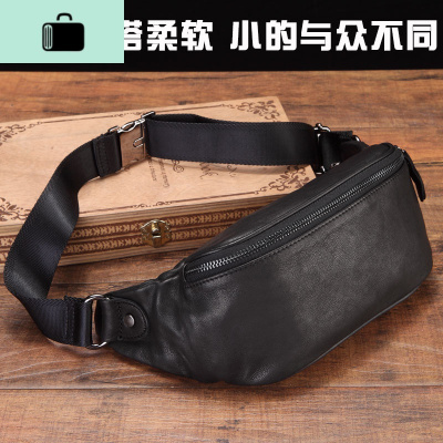 2019新款潮流日韩原宿男胸包 休闲斜挎软皮男士腰包 夏季复古背包NEW LAKE 黑色腰包男