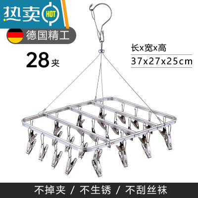 三维工匠铝合金多夹子晾衣架婴儿凉袜子架挂钩晾袜夹内衣不锈钢折叠晒袜架