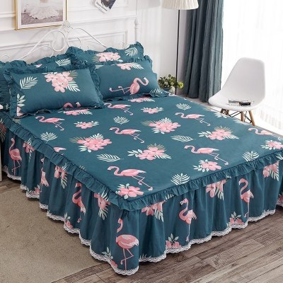 美帮汇全棉床罩床套防滑床裙式单件全棉保护防尘米床单1三件套花边公主 爱情鸟 180x200[单件床裙]