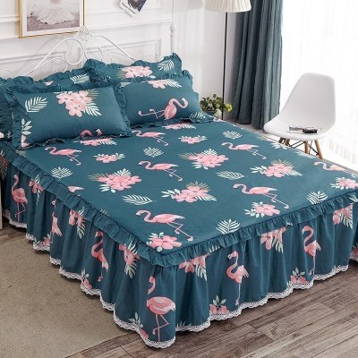 美帮汇全棉床罩床套防滑床裙式单件全棉保护防尘米床单1三件套花边公主 爱情鸟 180x200[床裙+2个枕套]