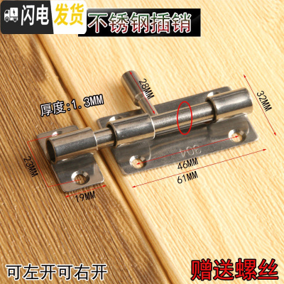 三维工匠闩木加厚不锈钢插销扣栓挂锁锁扣搭扣老式防盗房插销 加厚不锈钢平边左右插销(4寸)房门安全扣