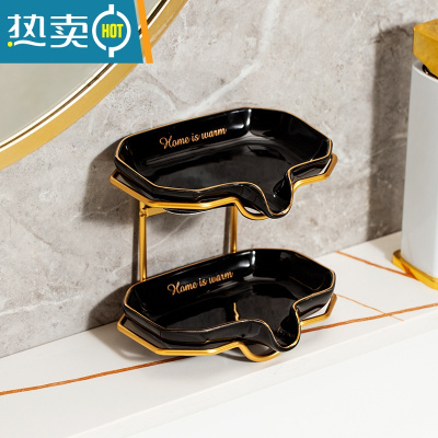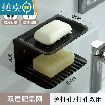 敬平轻奢风双层肥皂盒壁挂式沥水香皂盒免打孔置物架皂碟皂架收纳 英文肥皂盒双层 [黑色]
