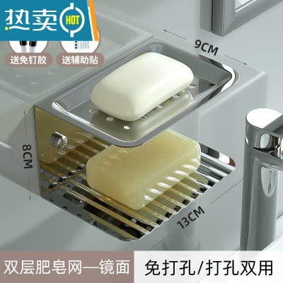 敬平不锈钢免打孔双层肥皂盒香皂盒子浴室沥水置物架壁挂式卫生间皂碟 双层皂碟——镜面