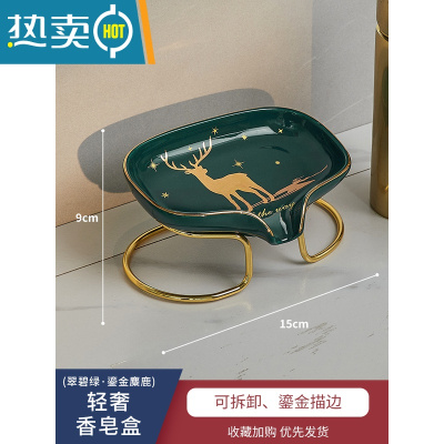 敬平浴室香皂盒轻奢风肥皂盒免打孔壁挂沥水卫生间家用创意皂碟架 翠碧绿 . [鎏金麋鹿] . 皂碟