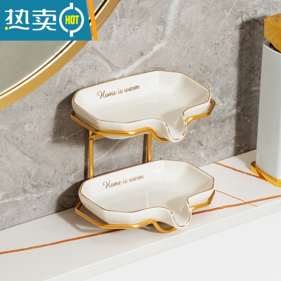 敬平欧式陶瓷香皂盒简约时尚沥水肥皂盒酒店卫生间装饰皂碟创意皂托架 鲛尾描金白色[支架款]
