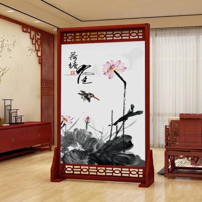 中式实木屏风隔断客厅装饰卧室遮挡家用胡桃镂空 座屏 定制100*180(上或下一面镂空) 整装