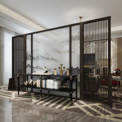 新中式屏风隔断客厅山水玄关别墅实木定制镂空酒店装饰格栅大座屏 乌金木:200*180cm高 整装