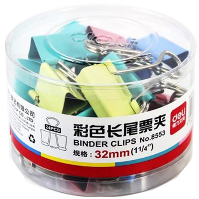 【精选】得力(deli) 24只32mm彩色长尾票夹 金属票据夹燕尾夹铁夹子 中号 8553