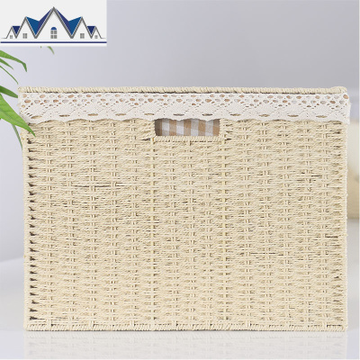 编收纳筐桌面整理箱置物箱大号杂物收纳盒带盖储物箱家用篮子 三维工匠