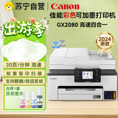 佳能(Canon)GX2080 彩色喷墨无线加墨式高容量家用办公传真一体机打印复印扫描 双频WiFi 5G/微信远程