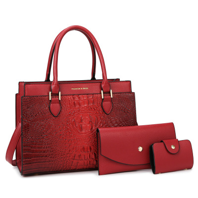 欧美范新款鳄鱼纹时尚女包潮流女士单肩包压花手提包包三件套
