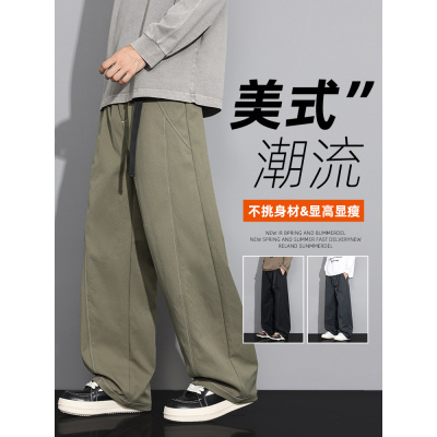 卫裤男士春秋款宽松直筒秋季加肥加大码胖子阔腿休闲美式裤子