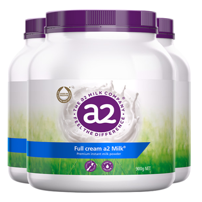 澳洲a2紫吨吨成人全脂奶粉 900g 3罐装 高钙A2蛋白质学生青少年孕妇