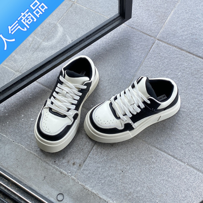 SUNTEK23年早秋新款软厚底透气拼接撞色休闲绑带运动小白面包板鞋女