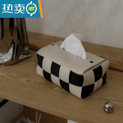 敬平装典美家ZOODII棋盘格纸巾盒客厅轻奢餐桌抽纸盒bv编织纸抽盒 米白面+黑