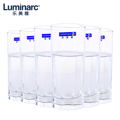 乐美雅玻璃杯家用耐高温喝水杯牛奶杯子简约耐热客厅泡绿茶杯八角杯6只套装