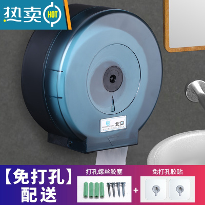 敬平免打孔酒店卫生间大卷纸盒盘纸盒壁挂式纸巾架厕所纸架防水抽纸盒 105B[蓝色]免打孔纸巾盒