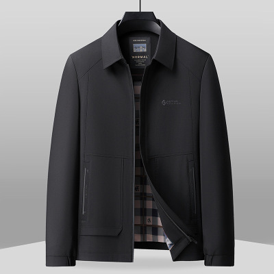 新款爸爸装春季翻领夹克中老年男式外套40-50岁中年服装男大码