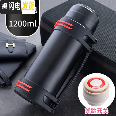 三维工匠保温杯大容量男女学生暖水瓶不锈钢户外便携车载旅行壶2 暗夜色1200+背带+除洉剂