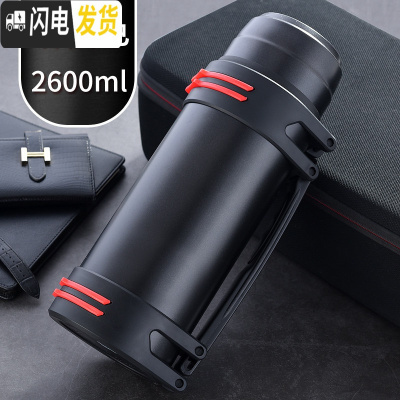 三维工匠保温杯大容量男女学生暖水瓶不锈钢户外便携车载旅行壶2 暗夜色2600+背带+除垢剂