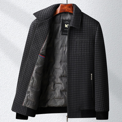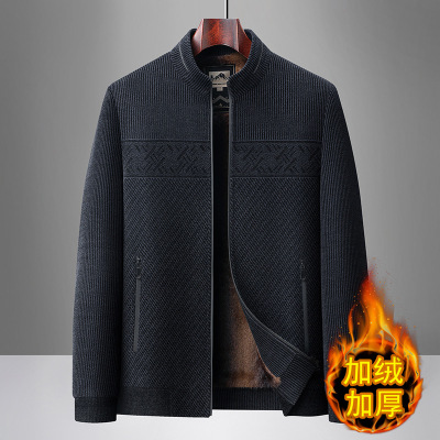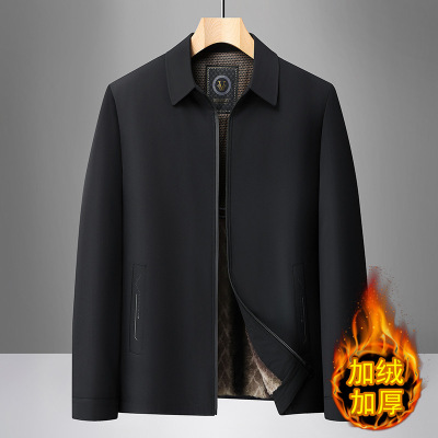 中老年加厚羊毛内胆商务翻领夹克秋冬新款男士休闲夹克爸爸装茄克