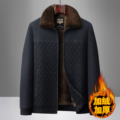 爸爸加绒厚款男士雪尼尔外套冬季保暖冬装夹克中老年爸爸毛领棉衣