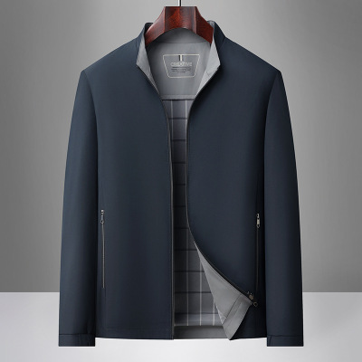 秋季新款中年爸爸商务夹克男立领休闲拉链保暖行政男士外套