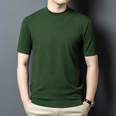 16针精纺短袖针织衫男春季新款可机洗套头半高领透气打底衫男