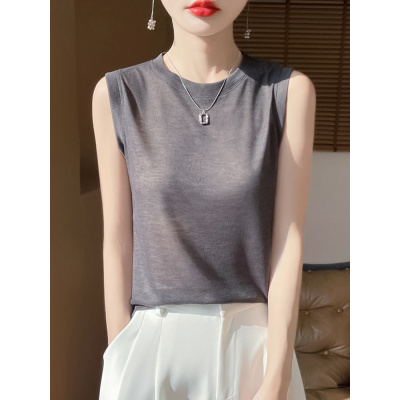 极简风感时尚女士精纺薄款背心春夏新款圆领套头针织内搭吊带