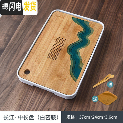 三维工匠 长江树脂茶盘创意密胺干泡托盘家用陶瓷功夫茶具小茶台 长江-中长盘-密胺白