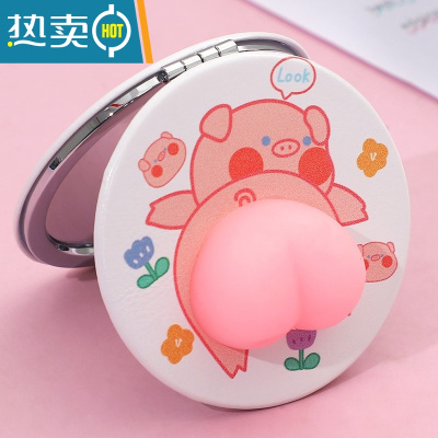敬平卡通小镜子迷你便携女生甜美可爱圆镜创意随身流沙化妆镜学生礼品 粉猪臀[发泄款皮镜]便携式用镜