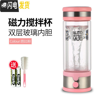 三维工匠玻璃磁力自动搅拌杯无轴电动懒人磁性搅拌杯咖啡杯石斛粉杯子 粉色(240)咖啡器具