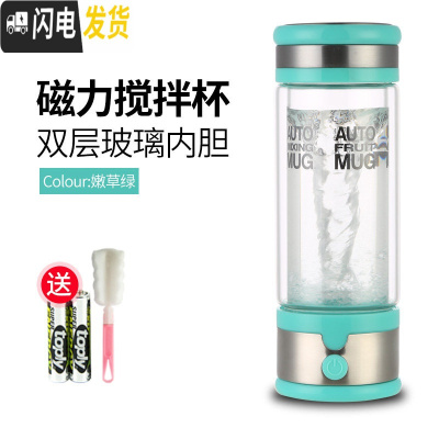 三维工匠玻璃磁力自动搅拌杯无轴电动懒人磁性搅拌杯咖啡杯石斛粉杯子 绿色(240)咖啡器具