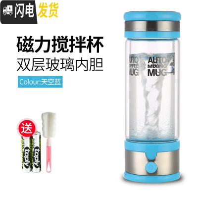 三维工匠玻璃磁力自动搅拌杯无轴电动懒人磁性搅拌杯咖啡杯石斛粉杯子 蓝色(240)咖啡器具