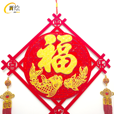 晋绘 春节布置装饰 双鱼送福挂件18*104cm 个