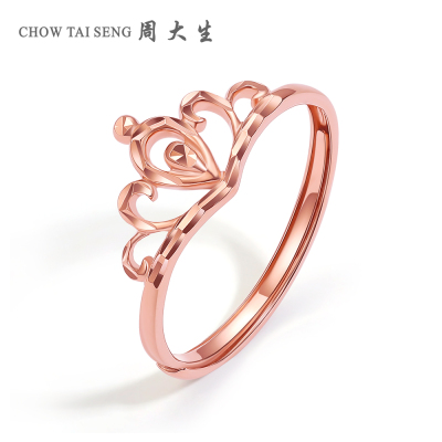 周大生 18k彩金皇冠戒指女款 Au750玫瑰红女戒 优雅时尚自戴送恋人求婚结婚礼物