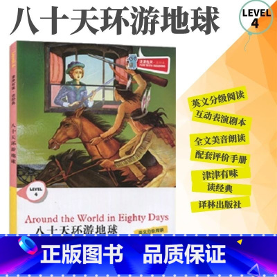 [正版]全新津津有味读经典八十天环游地球LEVEL4英文分级阅读高中初中789年级教辅书籍英语学习课外读物译林
