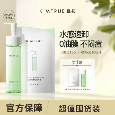 KIMTRUE且初小青瓜脸部温和深层清洁淡浓妆卸妆油150ml+150ml替换装