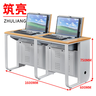 鑫虎威 办公家具三人位翻转电脑桌隐藏显示器式电脑桌部队学校电教室机房培训桌