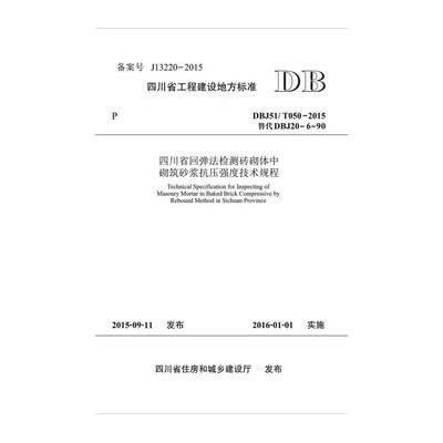 四川省工程建设地方标准四川省回弹法检测砖砌体中砌筑砂浆抗压强度技术规程:DBJ51/ T050-2015