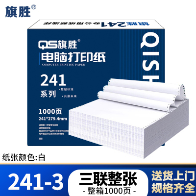 旗胜 打印纸 241-3 三联整张 白色 1000张/箱