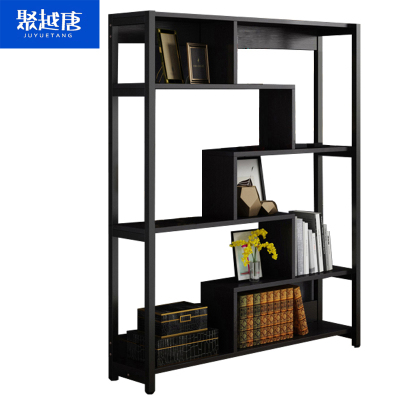 汐岩简易书架置物架多层简约落地客厅隔断钢木货架陈列架搁板花架铁艺