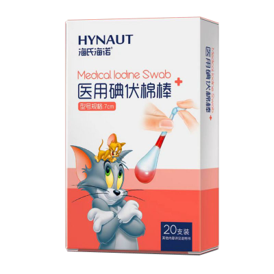 [5盒]海氏海诺 医用碘伏棉棒20支x5盒 一次性伤口护理 婴儿肚脐消毒 棉签碘伏棉棒