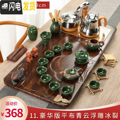 三维工匠整套茶具套装家用简约实木茶盘全自动一体泡茶电热炉功夫茶道茶台 11.豪华版平步青云浮雕冰裂 32件