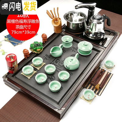 三维工匠功夫茶具套装家用全自动四合一整套陶瓷茶杯茶道一体茶台实木茶盘 款式18福寿如意万福浮雕鱼黑檀色(送桶) 28件