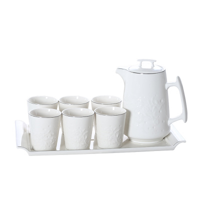 顺祥陶瓷茶具套装 欧式+中式现代浮雕水具8件套 一抹金艳 苏宁自营