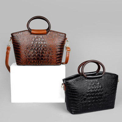 女包2022新款高品质欧美时尚鳄鱼纹复古软皮女式手提包
