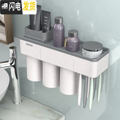 三维工匠磁吸式漱口杯套装牙刷杯架置物架情侣牙刷杯收纳架挂壁式洗漱套装 高级灰磁吸牙刷架+3杯