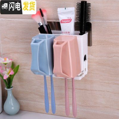 三维工匠吸壁式牙刷置物架漱口杯套装免打孔刷牙杯架子卫生间盘壁挂牙刷架 新3口带挤牙膏器(挣钱管钱花钱