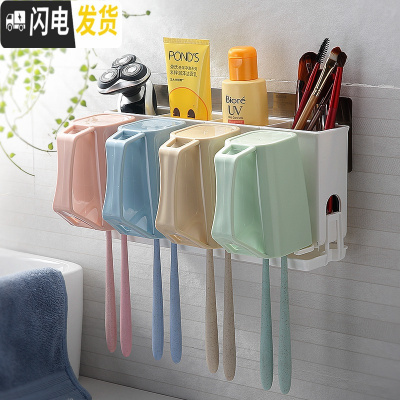 三维工匠吸壁式牙刷置物架漱口杯套装免打孔刷牙杯架子卫生间盘壁挂牙刷架 新4口(挣钱管钱富养花钱)